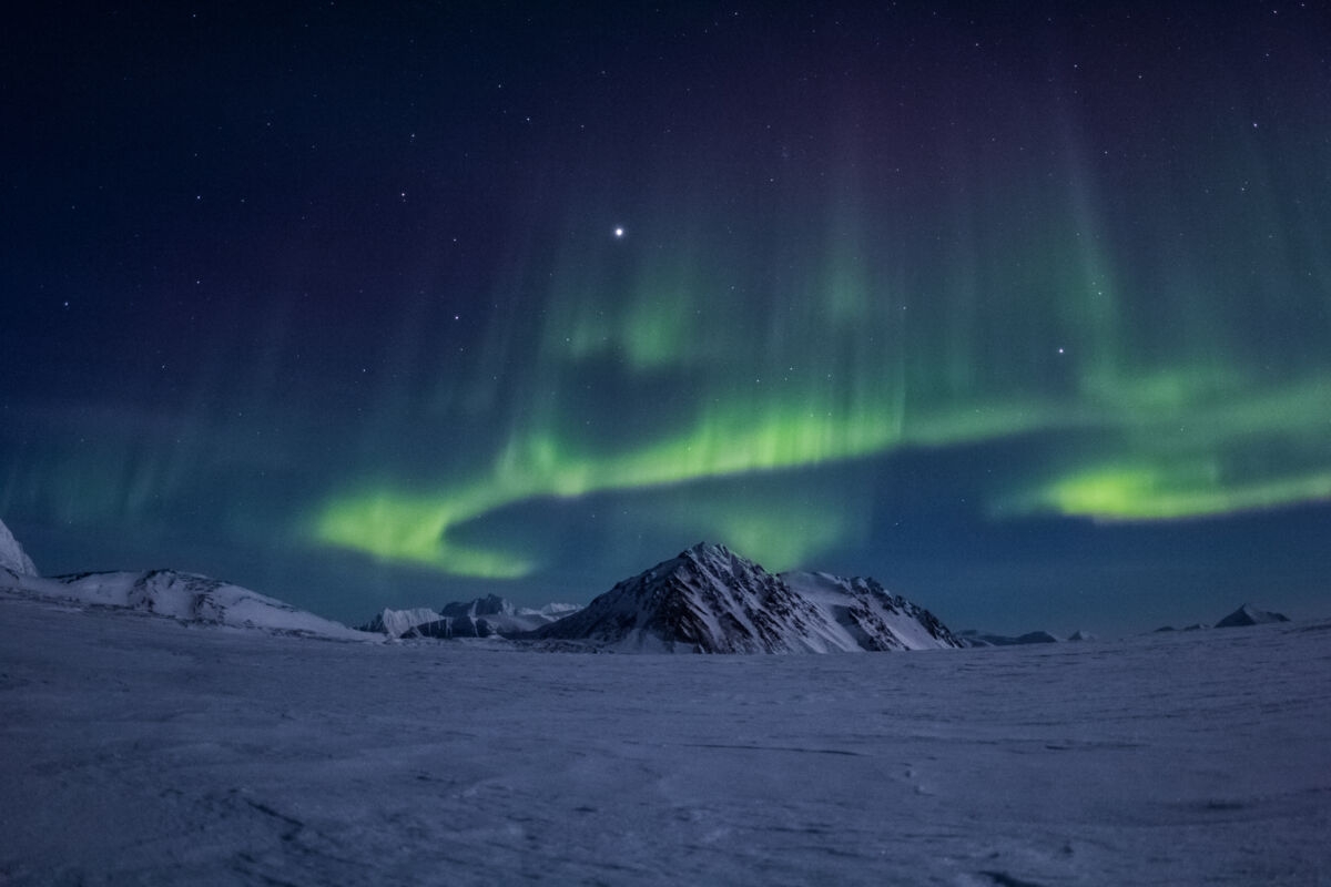 I slutten av oktober forsvinner det siste glimt av sol, og Svalbard går inn i mørketiden som varer i mer enn to måneder. Er himmelen skyfri, glitrer stjernene, og månelyset kaster et vakkert lys over himmelen.