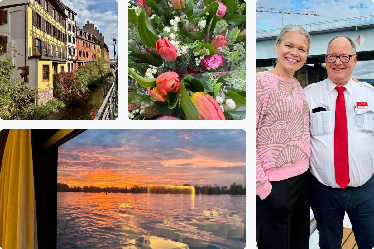 Vi har svensk reseledare med ombord. Vinprovningar och trevlig underhĂ„llning pĂ„ gitarr stĂ„r norsktalande Andreas Karlsen för. Vinkryssningen visar oss Strasbourg, vinorten RĂŒdesheim, Moseldalens pĂ€rla Cochem och historiska Koblenz.